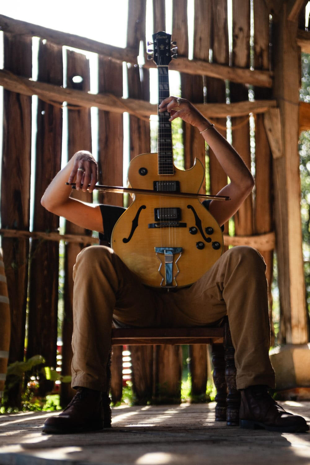 My voice isn’t human—it’s that of my bowed guitar. With it, I shape an instrumental, cinematic hip-hop, where the freedom of nu-jazz meets hypnotic grooves.